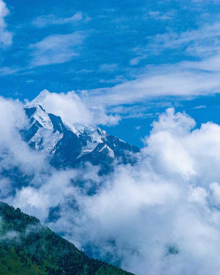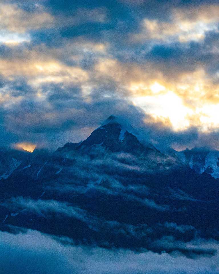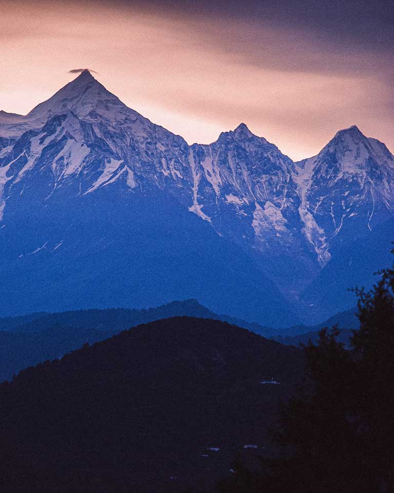 দেবন সিংহ আমাদের নিয়ে গেলেন মুন্সিয়ারি—পৃথিবীর প্রান্তে। এখানেই দেখা যায় পাঁচটি শুভ্র শৃঙ্গ—পঞ্চচুলি। কথিত আছে, পাণ্ডবরা স্বর্গে যাওয়ার আগে এখানেই শেষবার রান্না করেছিলেন। এই পাঁচটি শৃঙ্গ (৬,৩৩৪ থেকে ৬,৯০৪ মিটার) একদিকে ধর্মীয় প্রতীক, অন্যদিকে পর্বতারোহীদের চ্যালেঞ্জ। সন্ধ্যা সাতটা নাগাদ পৌঁছালাম মুন্সিয়ারিতে। রাত ন’টার দিকে, মেঘ সরতেই দেখা গেল পঞ্চচুলি—একটা হালকা আলোয় ঝলমলে পাঁচটি চূড়া, যেন হাতে ঝুলিয়ে রাখা পাঁচটি দীপ।