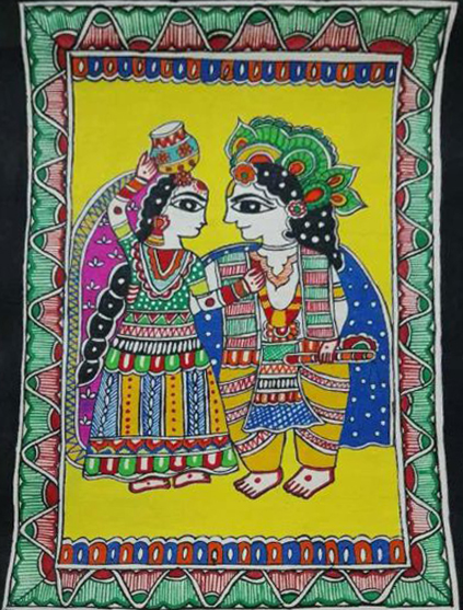 Mithila art (also known as Madhubani art) is a style of painting practiced in the Mithila region of India and Nepal. It is named after the Madhubani district of Bihar, India, which is where it originated. Artists create these paintings using a variety of mediums, including their own fingers, or twigs, brushes, nib-pens, and matchsticks.
